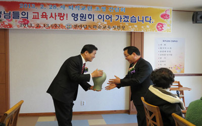 À̳¯ °£´ãȸ¿¡¼ ·ù³²±Ô ±³À°ÀåÀº ¼Û°øÆÐ¸¦ ÇѺРÇѺп¡°Ô ÁõÁ¤ÇÑ ÈÄ ÅðÁ÷±³¿øµéÀÇ Æò»ýµ¿¾È ±³´Ü¿¡ ½ñÀº ¶¡°ú °ø·Î¸¦ Ä¡ÇÏÇß´Ù. ¶ÇÇÑ, ¸öÀº ºñ·Ï ¶°³ªÁö¸¸ º¸ÀÌÁö ¾Ê´Â °÷¿¡¼ ȼø ±³À° ¹ßÀüÀ» À§ÇØ Èû½á ÁÙ °ÍÀ» ´çºÎÇß´Ù.