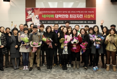 ÇÑÆí, <³×À̹ö ´ëÇи¸È ÃÖ°ÀÚÀü>Àº ¸¸È Àü°ø ÇлýµéÀÌ ÀÛǰÀ» ÅëÇØ ÀÌ¿ëÀÚµéÀ» ¸¸³¯ ¼ö ÀÖ´Â ±âȸ¸¦ Á¦°øÇϰí, ¸¸È »ýŰèÀÇ °Ç°ÇÑ ±âƲÀ» ¸¶·ÃÇϰíÀÚ ÃßÁøµÈ °ø¸ðÀüÀ¸·Î Çѱ¹¸¸È¿µ»óÁøÈï¿øÀº 2013³âµµ¿¡µµ ¸¸ÈâÀÛ ¿ì¼ö ÀÎÀçÀÇ ¹ß±¼°ú À°¼ºÀ» À§ÇØ ´Ù¾çÇÑ °ø¸ðÀü°ú ±³À° »ç¾÷À» ÁøÇàÇÒ ¿¹Á¤ÀÌ´Ù.