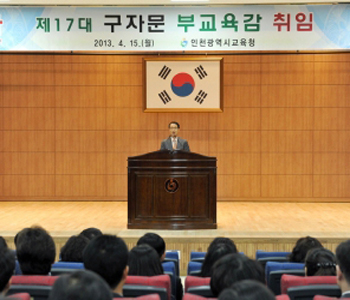 ÃëÀӽĿ¡¼ ±¸ ºÎ±³À°°¨Àº ¡°¼¼°è ÀÏ·ùµµ½Ã, µ¿ºÏ¾ÆÀÇ Á߽ɵµ½ÃÀÎ ÀÎõ½ÃÀÇ ±³À°¹ßÀüÀ» À§ÇØ ºÀ»çÇÏ°Ô µÈ °ÍÀ» ´õ¾ø´Â ¿µ±¤À¸·Î »ý°¢Çϸç, ´ëÇѹα¹ ÃÖ°íÀÇ ±Û·Î¹ú ±³À° Á߽ɵµ½Ã°¡ µÇµµ·Ï ÃÖ¼±À» ´ÙÇϰڴ١±¸ç, ¡°³ª±ÙÇü ±³À°°¨À» Àß º¸ÇÊÇØ ¹Ù¸¥ Àμº°ú ½Ç·ÂÀ» °®Ãá âÀÇÀÎÀ縦 °¥¸ÁÇÏ´Â Çкθð¿Í ½Ã¹Î, Áö¿ª»çȸÀÇ ±â´ë¿¡ ºÎÀÀÇϵµ·Ï ¿°ú ¼ºÀ» ´ÙÇϰڴ١±°í ¹àÇû´Ù.