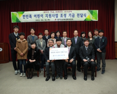 Áö³ÇØ 2¿ù °æ±âµµ±³À°Ã»°ú ¿ì¸®¹ÎÁ·¼·Îµ½±â¿îµ¿, °æ±â±³ÃÑ, °æ±â±³À°ÀÚ¿øºÀ»ç´ÜüÇùÀÇȸ°¡ ¾÷¹«Çù¾àÀ» ü°áÇØ ÇÔ²² ÁøÇàÇØ ¿Â »ç¾÷À¸·Î, µµ³» ÃÊ¡¤Áß¡¤°í 1õ 475°³ Çб³ ÇлýµéÀÌ ±âÁõÇÑ Çå ±³°ú¼¸¦ ¸Å°¢ÇÑ ±Ý¾×À¸·Î Á¶¼ºµÈ ±â±Ý 1¾ï 1õ¿©¸¸¿øÀ» ¿ì¸®¹ÎÁ·¼·Îµ½±â¿îµ¿ »óÀÓ °øµ¿´ëÇ¥¿¡°Ô Àü´ÞÇß´Ù.