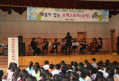 ¿ø¹Ìè¹ö¿ÀÄɽºÆ®¶ó´Â Çѱ¹ÀÎÀÇ ½É±ÝÀ» ¿ï¸®´Â ¾Æ¸§´Ù¿î ¼±À²ÀÇ ¾Æ¸®¶ûÀ» ½ÃÀÛÀ¸·Î ¾î¸°À̵鿡°Ô Ä£¼÷ÇÑ Àü·¡µ¿¿ä»Ó¸¸ ¾Æ´Ï¶ó Ŭ·¡½ÄÀ½¾Ç, µå¶ó¸¶ OST, °ÔÀÓÀ½¾Ç, ½ÉÁö¾î ÃÖ±Ù Àü¼¼°èÀÇ À̸ñÀ» ¹ÞÀº Çѱ¹°¡¿ä °³²½ºÅ¸ÀϱîÁö ´Ù¾çÇÑ À帣ÀÇ À½¾ÇÀ» ¿¬ÁÖÇÏ¸ç ¾î¸°À̵éÀÇ Å« È£ÀÀÀ» ¹Þ¾Ò´Ù.