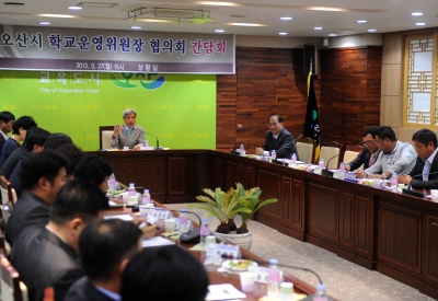 À̳¯ °£´ãȸ¿¡¼´Â ¿À»ê½Ã °ü³» ÃÊ¡¤Áß¡¤°í 38°³±³ Çб³¿î¿µÀ§¿øÀåÀÌ Âü¼®ÇÑ °¡¿îµ¥ 2013³âµµ Àü¹ÝÀûÀÎ ±³À°»ç¾÷¿¡ ´ëÇÑ ¼³¸í, Çб³¹ßÀüÀ» À§ÇÑ ÀǰßûÃë¿Í ¹ßÀü¹æÇâ¿¡ ´ëÇÑ ³íÀÇ µîÀÌ ´Ù·ïÁ³´Ù.