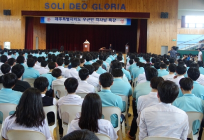 ¿ì±Ù¹Î Á¦ÁÖµµ½Ã»ç´Â Áö³­ 7ÀÏ(±Ý) ¿ÀÈÄ Á¦ÁÖÁß¾Ó°íµîÇб³(±³Àå ºÎÀçÈ£)¸¦ ¹æ¹® Çб³ üÀ°°ü¿¡¼­ Ưº° °­¿¬¡¯À» ½Ç½ÃÇß´Ù.