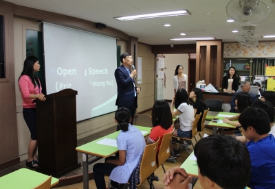 °³°½Ä¿¡¼ ³²ºÎ±³À°Áö¿øÃ» ¹Ú½Â³² ±¹ÀåÀº ¿µ¾î·Î ÇлýµéÀÌ »ì¾Æ°¥ ¹Ì·¡»çȸ¿¡¼ÀÇ ¿µ¾îÀÇ Á߿伺À» »ó±â½ÃÄÑÁÖ°í °Ý·Á¸»À» ÀÚ¿¬½º·± ¿µ¾î·Î Çϱ⵵ Çß´Ù.