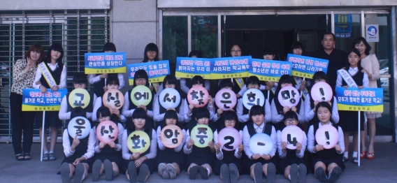 ȾÏÁß 2Çгâ 4¹Ý ÇлýµéÀº Çб³Æø·Â ¿¹¹æÀ» À§ÇÑ ÀÌ Ä·ÆäÀÎÀÇ ÃëÁö¸¦ ÀÌÇØÇϰí ÀÚ¹ßÀûÀ¸·Î Çà»ç¿¡ Âü¿©Çϱâ·Î °áÁ¤Çϰí, ªÀº 3ÁÖ°£ÀÇ ¿¬½À ±â°£ µ¿¾È ÇлýµéÀº ¼·Î°¡ ÇÑ ¸¶À½ÀÌ µÇ¾î ³ë·¡¸¦ ºÎ¸£°í µ¿ÀÛÀ» ÀÍÇû´Ù.