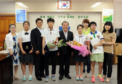 'ÀÚ¶û½º·¯¿î ±¤ÁÖÇлý'À¸·Î ¼±¹ßµÈ ÇлýÀº, ¼ºÀû¿ì¼ö ÀåÇбÝÀ» ºÒ¿ì ÀÌ¿ô¿¡ ±âºÎÇÑ ´ë¼º¿©°í 2³â Á¤Èñ¼±, Á¤½ÅÁöüÀå¾Ö¸¦ °¡Áø ÇüÀ» Áö±Ø Á¤¼ºÀ¸·Î º¸»ìÇÇ´Â ¿ì¾Ö¸¦ ½ÇõÇÑ ±¤ÁÖÀüÀÚ°ø°í 1³â Á¤Áö¿õ, Àü±¹¹«¿ë°æ¿¬´ëȸ µî °¢Á¾ ´ëȸ¿¡¼ ¿ì¼öÇÑ ¼ºÀûÀ¸·Î ÀÔ»óÇÑ Á¶´ë¿©Áß 1³â ÀÓ¿©¸°, °ÇÑ Ã¥ÀÓ°¨À¸·Î ¸ÃÀº ÀÏÀ» ¼º½ÇÈ÷ ¼öÇàÇÏ¸ç ºÀ»çÁ¤½ÅÀ» ¹ßÈÖÇÑ ¿µÃµÃÊ 6³â ±è¼¼Àº Çлý µî 4¸íÀÌ´Ù.