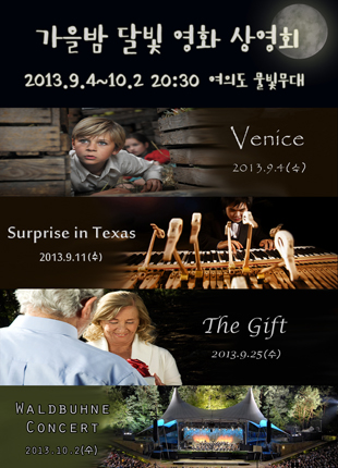 ¸¶Áö¸· ³¯ÀÎ 10.2(¼ö)¿¡´Â 2011 ¹ßÆ®Äû³×¿¡¼­ ¿­·È´ø º£¸¦¸° ÇÊÇϸð´ÏÀÇ °ø¿¬½ÇȲÀ» ´ãÀº ¡®¹ßÆ®ºß³× ¾ß¿ÜÄܼ­Æ®(Waldbuehne 2011 Fellini, Jazz & Co.)¡¯¸¦ ¿µ»óÀ¸·Î ¸¸³ªº¼ ¼ö ÀÖ´Ù. ¿µ»ó¹° »ó¿µ Àü, 19:00ºÎÅÍ <ÇѰ­ ¹°ºû ÀçÁî>°ø¿¬ÀÌ ÇÑ ½Ã°£µ¿¾È ÁøÇàµÇ´Ï ÀÏÂï¿Í¼­ °ø¿¬µµ º¸´Â Àϼ®ÀÌÁ¶ÀÇ Áñ°Å¿òÀ» ¸¸³£Çغ¼ ¼ö ÀÖ´Ù.