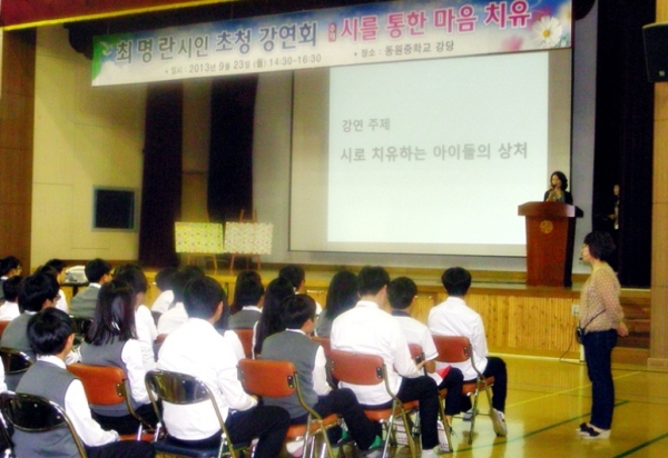 ÇлýµéÀº °¿¬À» µè±â Àü, ÃÖ¸í¶õ ½ÃÀÎÀÇ ½Ã¸¦ ÇÔ²² ÀÐ°í ½ÃÈ ±×¸®±â¸¦ Çϰųª ÀÛ°¡¿¡°Ô ±Ã±ÝÇÑ Á¡¿¡ ´ëÇØ Áú¹®Áö¸¦ ¸¸µé¸ç ½ÃÀÎÀ» ¸¸³ª±â À§ÇÑ Áغñ¸¦ Çß´Ù.