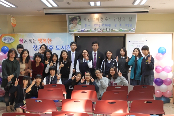 ¼º³²½Ã â°î¿©ÀÚÁßÇб³(±³Àå ¹ÚÇѼ·)´Â 10¿ù µµ¼­°ü¹®È­Á¦ ±â°£À» ¸ÂÀÌÇØ Áö³­ 24ÀÏ(¸ñ), Áö¿ª»çȸ ÀÛ°¡, ±³»ç, Çлý 102¸íÀÌ ÇÔ²² Âü¿©ÇÑ °¡¿îµ¥ Çѱ¹½ÃÀÎÇùȸ°¡ ÁÖÃÖÇÏ´Â Àü±¹Ã»¼Ò³â ½Ã³¶¼Û ÃàÁ¦¿¡¼­ â°î¿©ÁßÀÌ ¼±Á¤µÅ ¡°½ÃÀΰú ¸¸³²ÀÇ ³¯¡± Çà»ç¸¦ °³ÃÖÇÞ´Ù.