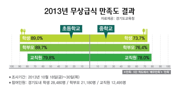 ¼³¹®Á¶»ç °á°ú 86.8%ÀÇ ÃʵîÇб³, Çлý․±³Á÷¿ø․Çкθð´Â ¹«»ó±Þ½ÄÀ», 90.3%´Â ģȯ°æ±Þ½ÄÀ» ¸¸Á·Çß´Ù. ƯÈ÷ À۳⿡ ºñÇØ ±Þ½Ä Á÷Á¢ ¼öÇýÀÚÀÎ ÇлýÀÇ ¹«»ó±Þ½Ä ¸¸Á·µµ°¡ 89.0%·Î À۳⠺¸´Ù 0.5% »ó½Â, ģȯ°æ±Þ½Ä ¸¸Á·µµ°¡ 87.5%·Î À۳⠺¸´Ù 0.4% »ó½ÂÇß´Ù.