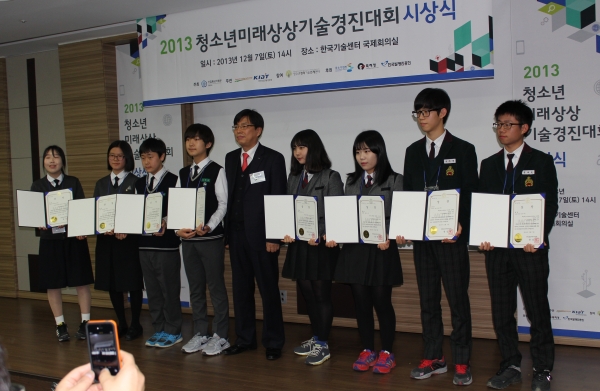 À̾î 12¿ù 7ÀÏ Çѱ¹±â¼ú¼¾ÅÍ¿¡¼ ÁøÇàÇÑ ¡®2013 û¼Ò³â¹Ì·¡»ó»ó±â¼ú °æÁø´ëȸ¡¯¿¡¼ ´ë»ó, Àº»ó, µ¿»óÀ» ÈÛ¾²´Â Äè°Å¸¦ ÀÌ·èÇß´Ù.