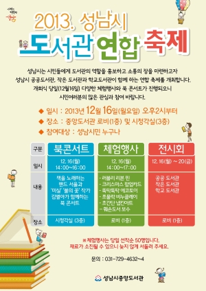 ¼º³²½Ã Á¤º¸¹®È­¼¾ÅÍ´Â ½Ã¹Îµé¿¡°Ô µµ¼­°üÀÇ ¿ªÇÒÀ» ¾Ë¸®°í ½Ã¹Î ¼ÒÅëÀÇ ÀåÀ» ¿­°íÀÚ °ø°øµµ¼­°ü 7°÷°ú ÀÛÀº µµ¼­°ü 8°÷, Çб³µµ¼­°ü 2°÷ µî 17°÷ µµ¼­°üÀÌ °øµ¿ Âü¿©ÇÏ´Â ´ë±Ô¸ð ÃàÁ¦¸¦ ¸¶·ÃÇß´Ù.