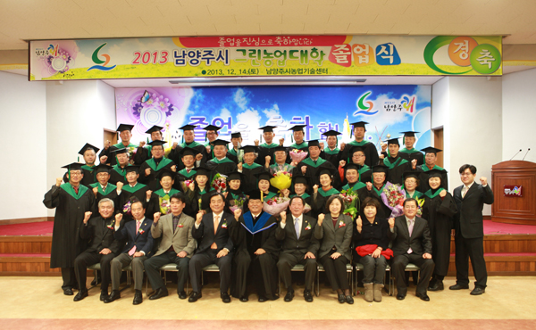 ³²¾çÁֽô Áö³­ 14ÀÏ À̼®¿ì ±×¸°³ó¾÷´ëÇÐÀå, ¹Ú±âÃá ±¹È¸ÀÇ¿øÀ» ºñ·ÔÇÑ ³»ºó°ú Á¹¾÷»ý, Çϰ´ µî 300¿©¸íÀÌ Âü¼®ÇÑ °¡¿îµ¥ ³ó¾÷±â¼ú¼¾ÅÍ ´ë°­´ç¿¡¼­ ¡°2013³âµµ ³²¾çÁֽñ׸°³ó¾÷´ëÇÐ Á¦8ȸ Á¹¾÷½Ä¡± À» °¡Á³´Ù.