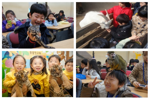»õ³¢¿ø¼þÀÌ, Åä³¢¿Í °ÅºÏ, »ç¸·¿©¿ì, ¿Õ°ü¾Þ¹« µî µ¿¹°Ä£±¸¿Í ÇÔ²² ³î°í ¡â¿°¼Ò¿¡°Ô ¸ÔÀÌ ÁÖ¸ç Ãʽĵ¿¹° Ư¡ ÀÍÈ÷±â ¡â¸Í¼ö ¸¶À» ³»½Ç¿¡¼ »çÀÚ, È£¶ûÀÌ Æ¯Â¡ ¹è¿ì±â µî ´Ù¾çÇÑ Äڳʰ¡ ¸¶·ÃµÅ ÀÖ´Ù. Âü°¡ºñ 6õ¿ø(1Àδç)ÀÌ´Ù. µ¿¹°±³½Ç ¹®ÀÇ 02)450-9381~2