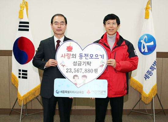 »ç¶û ³ª´®ÀÇ ºÀ»çȰµ¿ µîÀ¸·Î ²ÙÁØÈ÷ ¿Ã¸®»ç¶û¿îµ¿À» ½ÇõÇϰí ÀÖ´Â ¼¼Á¾½Ã±³À°Ã»Àº Áö³­ 11¿ù °ü³» ±³Á÷¿øµéÀÇ µû¶æÇÑ ¸¶À½À» ¸ð¾Æ ¾Ï Åõº´ Á÷¿ø Ä¡·áºñ¸¦ Áö¿øÇѵ¥ À̾î À̹ø¿£ ÇлýµéÀÇ ¼ÕÀ¸·Î »ýȰÀÌ ¾î·Á¿î Ä£±¸µéÀ» À§ÇÑ ¼º±ÝÀ» ¸ð±ÝÇØ »ç¶û ³ª´®ÀÇ Àǹ̸¦ ´õÇØ ³ª°¬´Ù.