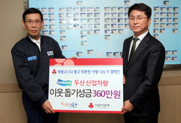 ÀÎõ µ¿±¸¿Í (ÁÖ)µÎ»ê »ê¾÷Â÷·®Àº 15ÀÏ ±¸Ã»Àå½Ç¿¡¼­ ¡®¼³¸ÂÀÌ ÀÌ¿ô»ç¶û ¼º±Ý Àü´Þ½Ä¡¯À» °¡Á³´Ù.