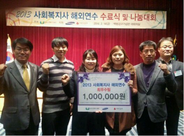 Áö³ÇØ »çȸº¹Áö»ç ÇØ¿Ü¿¬¼ö »ç¾÷¿¡ Âü¿©Çß´ø 9°³ÆÀ 65¸íÀÇ ÇØ¿Ü¿¬¼ö´Ü¿øµéÀÌ ¸ðµÎ ¸ð¿© ¼ö·á½ÄÀ» °®°í ¿¬¼ö°á°ú¸¦ ¼·Î °øÀ¯ÇÏ¸ç ¼·Î °Ý·ÁÇÏ´Â Çà»ç·Î, À̳¯ ¿¸° ¿¬¼ö°á°ú ³ª´®´ëȸ¿¡¼ ¿ì¼ö 2ÆÀ°ú ÃÖ¿ì¼ö 1ÆÀÀÌ ¼±Á¤µÆ°í, ³²¾çÁֽà »çȸº¹Áö»ç·Î ±¸¼ºµÈ ÇØ¿Ü¿¬¼öÆÀÀÌ ÃÖ¿ì¼ö»óÀ» ¼ö»óÇÏ´Â ¿µ±¤À» ¾È¾Ò´Ù.