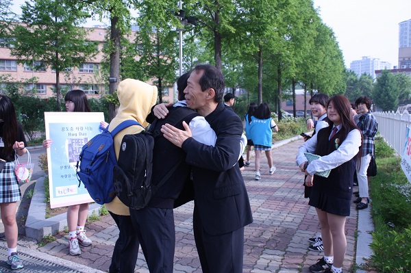 °øµµÁßÇб³´Â ÀÏÂï Ãâ±ÙÇÑ ±³»çµéÀÌ Á¤¹®°ú ÈĹ®¿¡¼­ µî±³ÇÏ´Â ÇлýµéÀ» ¾È¾ÆÁÖ°í ¡°»ç¶ûÇÑ´Ù! ±â¿î³»ÀÚ!¡± ±³»çµéÀÌ µî±³ÇÏ´Â ÇлýµéÀ» µû¶æÇÏ°Ô ¾È¾ÆÁÖ°í Æ÷¿ËÀ» ÇÏ¸ç °Ý·ÁÀÇ ¸»À» ÀüÇÏ´Â Çà»ç´Ù. ±³»çµéÀÌ ¸ÕÀú ´Ù°¡°¡ µû¶æÇÏ°Ô ¾È¾ÆÁÖ°í »ç¶ûÀÇ ¸¶À½À» ÀüÇϰí Ä£¹Ð°¨À» Çü¼ºÇϰí ÇлýµéÀº µû¶æÇÑ ÀμºÀ» Áö´Ï°í ¹Ù¸£°Ô ÀÚ¶ö ¼ö ÀÖµµ·Ï Çϰí ÀÖ´Ù.