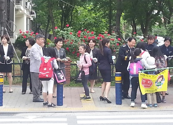 ³ì»ö¾î¸Ó´Ï ¿¬ÇÕȸ ¾î¸Ó´ÏµéÀÌ 20ÀÏ(È­) ¿ÀÀü 8½Ã ÇÏÀÏÃʵîÇб³ ¾Õ Ⱦ´Üº¸µµ¿¡¼­ ¾î¸°ÀÌÀÇ ¾ÈÀüÇÑ µî±·±æ Áöµµ¸¦ À§ÇÑ ±³Åë¾ÈÀü Ä·ÆäÀÎÀ» ÁøÇàÇß´Ù.