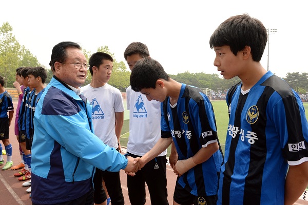 23ÀÏ »çÀü°æ±â·Î ½ÃÀÛµÈ Á¦43ȸ Àü±¹¼Ò³âüÀ°´ëȸ¿¡ ÃâÀüÇÑ ÀÎõ½Ã ¼±¼ö´Ü °Ý·Á¿¡ ³ª¼± ³ª±ÙÇü ÀÎõ±¤¿ª½Ã±³À°°¨Àº À̳¯ ³²µ¿±Ù¸°°ø¿øÃ౸Àå¿¡¼ ÁøÇàµÈ ÀÎõ ±¤¼ºÁß°ú °¿øµµ ¼ÓÃÊÁß°úÀÇ Ã౸°æ±â¸¦ °üÀüÇÏ°í ±¤¼ºÁß ¼±¼ö´Ü°ú °ü°èÀÚ¸¦ °Ý·ÁÇß´Ù.