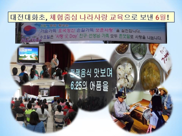 Çлý ÅëÀÏ․¾Èº¸ °è±â±³À° °È¸¦ À§ÇØ Àü±³»ýÀ» ´ë»óÀ¸·Î âÀÇÀû üÇèȰµ¿ ½Ã°£À» Ȱ¿ëÇØ Á¦59ȸ ÇöÃæÀÏ °è±â±³À°°ú Á¦64ÁÖ³â 6.25Çѱ¹ÀüÀï °è±â±³À°À» ½Ç½ÃÇß´Ù. ¾Æ¿ï·¯ ÅëÀϱ³À°ÁÖ°£À» ¿î¿µÇÏ¿© Çб޺°·Î ÅëÀÏ․¾Èº¸ °è±â¼ö¾÷À» 1½Ã°£ ÀÌ»ó ½Ç½ÃÇß´Ù.