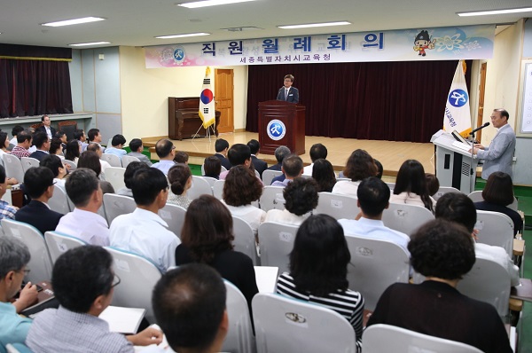 À̳¯ ÃëÀÓ ÈÄ Ã¹ ¹øÂ° ¿ù·ÊȸÀǸ¦ ÁÖÀçÇÑ ÃÖ±³Áø ±³À°°¨Àº ºÎÁ·ÇÑ Àοø°ú ¾î·Á¿î ¿©°Ç¿¡µµ ºÒ±¸ÇÏ°í ±×µ¿¾È ¼¼Á¾ ±³À°ÀÇ ¾ÈÁ¤°ú ¹ßÀüÀ» À§ÇØ Çå½ÅÇÑ Á÷¿øµéÀ» °Ý·ÁÇϰí, ¡®»õ·Î¿î Çб³, ÇູÇÑ ¾ÆÀ̵顯À» À§ÇØ »õ·Î¿î ¸¶Àεå¿Í ÀÇÁö·Î ¾÷¹«¿¡ ÀÓÇØÁÙ °ÍÀ» ´çºÎÇß´Ù.