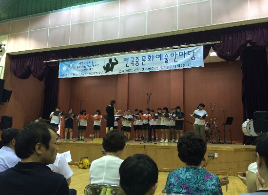 Àü°îÁßÇб³(±³Àå À¯µµºÀ)´Â Áö³­ 17ÀÏ(¸ñ) Àú³á 7½ÃºÎÅÍ 9½Ã±îÁö Àü°îÁßÇб³ °­´ç¿¡¼­ Áö¿ªÁֹΰú ÇÔ²² ¼ºÀåÇÏ´Â ¹®È­¿¹¼ú °ø¿¬À» ½Ç½ÃÇß´Ù.