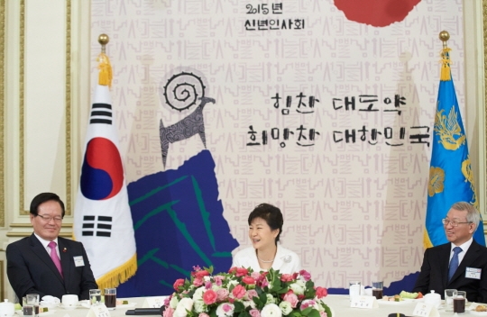 ¹Ú±ÙÇý ´ëÅë·ÉÀº 2015³â »õÇØ¸¦ ¸ÂÀÌÇÏ¿© 2ÀÏ ¿ÀÈÄ Ã»¿Í´ë ¿µºó°ü¿¡¼ ÀÔ¹ý¡¤»ç¹ý¡¤ÇàÁ¤ºÎ ÁÖ¿ä °øÁ÷ÀÚ¿Í ¿©¤ý¾ß ´ëÇ¥ µî 2¹é¿©¸íÀÌ Âü¼®ÇÑ °¡¿îµ¥ ¡¸½Å³âÀλçȸ¡¹¸¦ °¡Áý´Ï´Ù. À̳¯ ½Å³âÀλçȸ¿¡´Â ¹Ú ´ëÅë·ÉÀ» ºñ·ÔÇÏ¿© Á¤ÀÇÈ ±¹È¸ÀÇÀå, ¾ç½ÂÅ ´ë¹ý¿øÀå, ¹ÚÇÑö Çå¹ýÀçÆÇ¼ÒÀå, Á¤È«¿ø ±¹¹«ÃѸ®, ÀÌÀκ¹ Áß¾Ó¼±°Å°ü¸®À§¿øÀå µî 5ºÎ¿äÀΰú ±è¹«¼º »õ´©¸®´ç ´ëÇ¥ÃÖ°íÀ§¿ø, ¹®Èñ»ó »õÁ¤Ä¡¹ÎÁÖ¿¬ÇÕ ºñ»ó´ëÃ¥À§¿øÀå µî ÁÖ¿ä Á¤´ç ´ëÇ¥¿Í ´çÁ÷ÀÚ, °æÁ¦ 5´ÜüÀå µîÀÌ Âü¼®ÇÑ °¡¿îµ¥ ´ëÅë·É°úÀÇ Àλ米ȯ, °Ç¹è Á¦ÀÇ, ½Å³â ´ö´ã, ´Ù°ú ¹× ȯ´ã, ½Å³â ´ÙÁü ¼øÀ¸·Î ÁøÇàµË´Ï´Ù.
