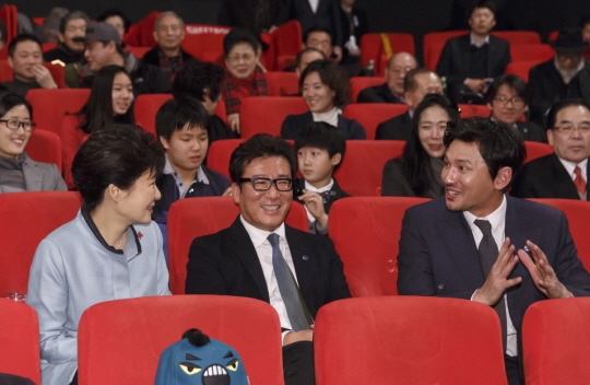 ¿µÈ­°¡ ³¡³ª°í ¹Ú ´ëÅë·ÉÀº ÁÂÃø¿¡ ¾É¾Æ ¿µÈ­¸¦ ÇÔ²² °ü¶÷ÇÑ ¹è¿ì ȲÁ¤¹Î ä«(±ØÁß À±´ö¼ö ¿ª)¿Í À±Á¦±Õ °¨µ¶¿¡°Ô "°¨µ¿ÀûÀÎ ¿µÈ­ Á¤¸» Àß ºÃ½À´Ï´Ù. ¾ÕÀ¸·Îµµ ÀÌ·± ÁÁÀº ¿µÈ­¸¦ ¸¹ÀÌ ¸¸µé¾úÀ¸¸é ÁÁ°Ú½À´Ï´Ù."¶ó°í ¸»Çß½À´Ï´Ù.
