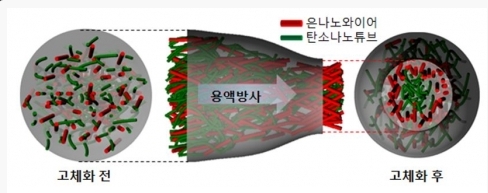 Çѱ¹Àü±â¿¬±¸¿ø(KERI) ¿¬±¸ÆÀÀÌ ´ë¾ÈÀ¸·Î °³¹ßÇÑ ¹æ¹ýÀº °íºÐÀÚ¿Í Åº¼Ò³ª³ëÆ©ºê(CNT)°¡ È¥ÇÕµÈ ÆäÀ̽ºÆ®(paste)¿¡, ºÐ»êÁ¦ ¾øÀÌ Àº³ª³ë¿ÍÀ̾ È¥ÇÕÇÏ¿© ¼¶À¯·Î ¸¸µé ¼ö ÀÖ´Â ÆäÀ̽ºÆ®¸¦ Á¦Á¶ÇÑ´Ù. ÀÌÈÄ ±âÁ¸ ¡®¿ë¾×¹æ»ç °øÁ¤¡¯À» ÅëÇØ Àü±â°¡ Àß È帣´Â °íÀüµµ¼º ¼¶À¯¸¦ Á¦Á¶ÇÏ´Â ¹æ¹ýÀÌ´Ù. ¿¬±¸ÆÀÀº ¿ë¾×¹æ»ç °øÁ¤ Áß ¼¶À¯¸¦ ±»°Ô ÇÏ´Â ´Ü°è¿¡¼­ Àº³ª³ë¿ÍÀ̾ ¼¶À¯ Ç¥¸éÀ¸·Î À¯µµÇÔÀ¸·Î½á, °íºÐÀÚ·Î ÀÎÇÑ ¼¶À¯·Î¼­ÀÇ Æ¯¼ºÀº À¯ÁöÇϸ鼭 ź¼Ò³ª³ëÆ©ºê ¹× Àç¹è¿­µÈ Àº³ª³ë¿ÍÀ̾ ÀÇÇØ °íºÐÀÚÀÇ ³ôÀº ÇÔ·®¿¡µµ ºÒ±¸ÇÏ°í ¸Å¿ì ¿ì¼öÇÑ Àü±âÀüµµµµ¸¦ ³ªÅ¸³¯ ¼ö ÀÖ°Ô Çß´Ù. ƯÈ÷, ±¹³» »ý»ê±â¹ÝÀÌ ¸Å¿ì Àß °®ÃçÁ® ÀÖ´Â ¿ë¾×(½À½Ä)¹æ»ç °øÁ¤À» ±×´ë·Î Ȱ¿ëÇÒ ¼ö ÀÖ¾î ´ë·®Á¦Á¶°¡ ½±´Ù´Â ÀåÁ¡ÀÌ ÀÖ´Ù.