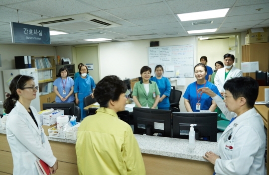 À̾î, ¹Ú ´ëÅë·ÉÀº ¸Þ¸£½º ȯÀÚ°¡ Ä¡·á¸¦ ¹Þ°í ÀÖ´Â À½¾Ð °Ý¸®º´µ¿À¸·Î À̵¿ÇÏ¿© ½ÅÇü½Ä °¨¿°³»°ú °úÀå°ú °£È£»ç¸¦ °Ý·ÁÇϰí, º´µ¿ ¿î¿µ ÇöȲ°ú ȯÀÚ Ä¡·á »óȲÀ» Á¡°ËÇß½À´Ï´Ù.