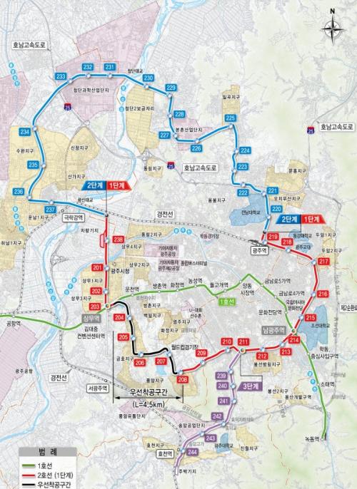 °³Åë ½Ã±â´Â ½Ãû~¿ùµåÄŰæ±âÀå~¹é¿î±¤Àå~±¤ÁÖ¿ª±îÁö ¿¬°áÇÏ´Â 1´Ü°è ±¸°£Àº 2023³â, ±¤ÁÖ¿ª~÷´Ü~¼ö¿Ï~½ÃûÀ¸·Î À̾îÁö´Â 2´Ü°è´Â 2024³â, ¹é¿î±¤Àå~Áø¿ù~ȿõ¿ªÀ» ÀÕ´Â 3´Ü°è´Â 2025³âÀ¸·Î ¿¹Á¤µÈ´Ù.