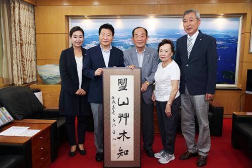 ¾È»ó¼ö ½ÃÀåÀº ¡°¿ì¸®Áö¿ª ±ÙÇö´ë»ç¿¡ ÀÇ¹Ì ÀÖ´Â ¹é¹ü ±è±¸ ¼±»ýÀÇ Øïߣõ®ÙÊò±(¸Í»êÃʸñÁö) Ä£ÇÊ À¯¹¬ 1Á¡À» ¾Æ¹«·± Á¶°Ç ¾øÀÌ ±âÁõÇØÁØ ±èûÁ¤ ¾¾²² °¨»çµå¸°´Ù¡±¸ç °í¸¶¿òÀ» Ç¥½ÃÇÑ ÈÄ, ±âÁõÁõ¼­¿Í °¨»çÆÐ¸¦ Àü´ÞÇß´Ù.