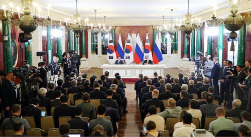 ¹®ÀçÀÎ ´ëÇѹα¹ ´ëÅë·ÉÀº ºí¶óµð¹Ì¸£ Ǫƾ ·¯½Ã¾Æ¿¬¹æ ´ëÅë·ÉÀÇ ÃÊûÀ¸·Î 2018³â 6¿ù 21ÀϺÎÅÍ 23ÀϱîÁö ·¯½Ã¾Æ¿¬¹æÀ» ±¹ºó ¹æ¹®ÇÏ¿´´Ù.