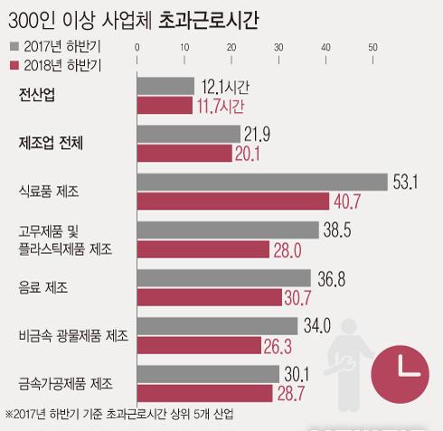 ƯÈ÷ Á¦Á¶¾÷ 24°³ ¾÷Á¾ °¡¿îµ¥ Ãʰú±Ù·Î½Ã°£ÀÌ ±ä ½Ä·áǰ¡¤°í¹«Á¦Ç° ¹× ÇÃ¶ó½ºÆ½ µî »óÀ§ 5°³ »ê¾÷ ¸ðµÎ Ãʰú±Ù·Î½Ã°£ÀÌ ´ëÆø °¨¼ÒÇÑ °ÍÀ¸·Î ³ªÅ¸³µ½À´Ï´Ù.