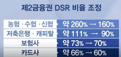 ÀúÃàÀºÇà°ú ijÇÇÅ»Àº 2021³â ¸»±îÁö 90%, º¸Çè»ç¿Í Ä«µå»ç´Â °¢°¢ 70%, 60%·Î ¸ÂÃç¾ß ÇÑ´Ù.DSR µµÀÔÀº Á¤ºÎ°¡ ±ÝÀ¶±ÇÀÇ Ä¡¼Ú´Â °¡°è´ëÃâÀ» Àâ°Ú´Ù´Â Àǵµ·Î ½ÃÇàÇÏ´Â Á¤Ã¥ÀÌ´Ù. DSRÀº ¼Òµæ¿¡ ºñÇØ ºúÀÌ ¸¹Àº »ç¶÷ÀÇ ´ëÃâÀ» ÁÙ¿©¼ °¡°è´ëÃâÀÇ °ÇÀü¼ºÀ» ³ôÀδٴ µ¥ ±× ¸ñÀûÀÌ ÀÖ´Ù.