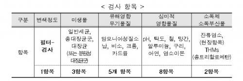 ¼öÁú°Ë»ç´Â ¸Ô´Â¹°¼öÁú±âÁØ 18°³ Ç׸ñ¿¡ ´ëÇØ ½Ç½ÃÇϰí, ÇÊÅͰ˻ç´Â º¯»öÀÇ Á¤µµ¸¦ º¸´Ù °´°üÀûÀ¸·Î ÆÇ´ÜÇϱâ À§ÇØ ¼öÁúÀ» ÆÇ´ÜÇÏ´Â ±âÁؿ뷮ÀÎ 1LÀÇ ¼öµ¾¹°À» Áø°øÆßÇÁ·Î ¸·¿©°úÁö(0.45§*)¿¡ ¿©°úÇØ¼ ³ªÅ¸³ª´Â º¯»öÁ¤µµ¸¦ ±âÁØÀ¸·Î ½Ç½ÃÇß´Ù.