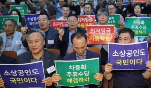 ¼Ò»ó°øÀεéÀº ÃÖÀúÀÓ±Ý Àλó·ü°ú »ó°ü¾ø´Â '´ëÁ¤ºÎ ÅõÀï'À» ¿¹°íÇß´Ù. Áß¼Ò±â¾÷Áß¾Óȸ´Â 12ÀÏ ÀÔÀå¹®À» ÅëÇØ "³»³âµµ ÃÖÀúÀÓ±Ý °áÁ¤Àº Áß¼Ò¡¤¿µ¼¼±â¾÷°ú ¼Ò»ó°øÀεéÀÌ Àý½ÇÈ÷ ±â´ëÇß´ø ÃÖ¼ÒÇÑÀÇ ¼öÁØÀÎ 'µ¿°á'À» ÀÌ·çÁö ¸øÇÑ °á°ú"¶ó°í Æò°¡ÇÏ¸é¼ "¾Æ½±°í ¾ÈŸ±õ´Ù"°í ½Ç¸Á°¨À» ³»ºñÃÆ´Ù.