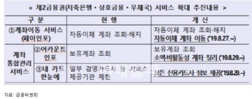 ±ÝÀ¶À§¿øÈ¸´Â ÀúÃàÀºÇà, »óÈ£±ÝÀ¶, ¿ìü±¹ °èÁ¿¡ ´ëÇØ¼­µµ ¡®ÀÚµ¿ÀÌü ¿¬°á°èÁ À̵¿ ¼­ºñ½º¡¯¿Í ¡®¼Ò¾×¡¤ºñȰµ¿¼º °èÁÂÁ¤¸®(¼ûÀº ±ÝÀ¶ÀÚ»ê ã±â)¡¯ µîÀ» È®´ë ½Ç½ÃÇÑ´Ù°í 26ÀÏ ¹àÇû´Ù. ¿ì¼± ¡®ÆäÀÌÀÎÆ÷¡¯ »çÀÌÆ®¸¦ ÅëÇØ Á¦°øµÇ´Â °èÁÂÀ̵¿¼­ºñ½ºÀÇ °æ¿ì ÇöÀç ÀºÇà±Ç °èÁ¿¡ ÇÑÇØ¼­¸¸ °¡´ÉÇß´Ù.