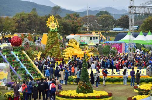 ÇÑÆí, ¿ÃÇØ ³ë¶õ²ÉÀÜÄ¡´Â ȲȭÄÚ½º¸ð½º¿Í ÇÎÅ©¹Ä¸®, õÀÏÈ« µî 10¾ï ¼ÛÀÌÀÇ °¡À»²É°ú Ä÷¯(color), À̾߱â(story), ºû(light) ¼¼ °¡Áö ÁÖÁ¦·Î Á¶¼ºµÈ Å׸¶Á¤¿øÀÌ °ü°´¸ÂÀÌ¿¡ ³ª¼¹´Ù. À强±ºÀÇ Ã߻꿡 ÀÇÇϸé 3ÀÏ~5ÀÏ, »çÈê°£ 26¸¸¿© ¸íÀÇ ¹æ¹®°´ÀÌ È²·æ°­À» ¹æ¹®Çϸç, °³¸· ÀÌÀüºÎÅÍ Àαâ¸ôÀ̰¡ ½ÃÀ۵ƴÙ.