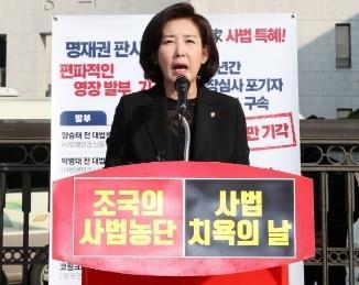 ´ë¹ý¿ø ¾Õ ÇöÀå ±¹°¨´ëåȸÀÇ¿¡´Â ³ª ¿ø³»´ëÇ¥¸¦ ºñ·ÔÇÑ ¿ø³» ÁöµµºÎ µî ÀÇ¿ø 17¸íÀÌ °ËÀº»ö »óº¹À» ÀÔ°í Âü¼®Çß´Ù. ÀÇ¿øµéÀº ¡®Á¶±¹ÀÇ »ç¹ý ³ó´Ü¡¯, ¡®»ç¹ý Ä¡¿åÀÇ ³¯¡¯ µîÀÇ ¹®±¸°¡ ÀûÈù ¼ÕÇÇÄÏÀ» µé¾ú´Ù.Çѱ¹´çÀº À̳¯ ¡°¹ý¿øÀÌ Áõ°ÅÀÎ¸ê µî ¹ßºÎ »çÀ¯°¡ ¸íÈ®ÇÑ Á¶ Àå°ü µ¿»ýÀÇ ¿µÀåÀ» ±â°¢ÇÑ °ÍÀº ¡®»ç¹ý³ó´Ü¡¯¡±À̶ó°í ÁÖÀåÇÏ¸ç ¡°¹®ÀçÀÎ Á¤±ÇÀÌ °ËÂû¿¡ ÀÌ¾î »ç¹ýºÎ±îÁö Àå¾ÇÇØ ¡®ÁÂÆÄµ¶À硯ÀÇ È·æÁ¡Á¤À» ÂïÀ¸·Á ÇÑ´Ù¡±°í ¸Íºñ³ Çß´Ù.
