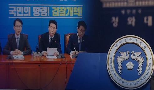 14ÀÏ Á¶±¹ Àü ¹ý¹«ºÎ Àå°üÀÇ »çÅð ¹ßÇ¥ µÚ ¹®ÀçÀÎ ´ëÅë·ÉÀº Á¶±¹ »çŸ¦ º¸µµÇؿ ¾ð·Ð¿¡ '¼ºÂûÇ϶ó'°í Çß´Ù. ´õºÒ¾î¹ÎÁÖ´çÀº Á¶ Àü Àå°üÀ» Á¤Ä¡ÀûÀÎ °ø¼¼ÀÇ ÇÇÇØÀÚ·Î ±ÔÁ¤Çß´Ù. ¿ÀÈ÷·Á ¾ß´çÀÌ '¸¸»ç Á¶±¹ Å¿'À» Çϰí ÀÖ´Ù¸ç ²Ù¢±âµµ Çß´Ù.