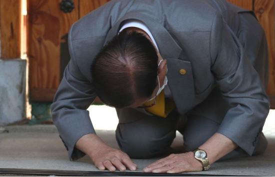 ½ÅõÁö±³ÁÖ°¡ ÀüÁ÷ ´ëÅë·É ½Ã°è¸¦ Â÷°í ±âÀÚȸ°ßÀå¿¡ ³ªÅ¸³ª Å« ÀýÀ» µÎ ¹ø ÇÏÀÚ ÀüÁ÷ ´ëÅë·É µî °ü·ÃÀÚµé ¹ßµî¿¡ ºÒÀÌ ¶³¾îÁø ¸ð¾ç»õ´Ù.