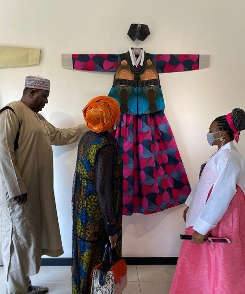 Ưº°È÷ À̹ø Àü½Ãȸ¿¡´Â ÇѺ¹ÁøÈï¼¾ÅÍ¿¡¼­ Á÷Á¢ Á¦ÀÛÇÑ ÇѺ¹À» ÀÔÀº ÀÌÁø¼ö Çѱ¹¹®È­¿øÀå°ú ¿ä·ç¹Ù(Yoruba)Á· Ãâ½ÅÀÎ Otunba Runsewe ³ªÀÌÁö¸®¾Æ ¹®È­¿¹¼úÀ§¿øÀå ºÎºÎ°¡ µ¿ ¼¾ÅÍ¿¡¼­ ¸¸µç ¿ä·ç¹Ù ºÎÁ· ÀüÅëÀǺ¹À» ÀÔ°í ÇÔ²² ³ª¿Í ´«±æÀ» ²ø¾ú´Ù.