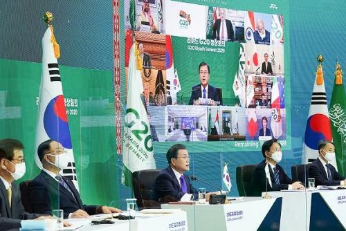 Áö³­´Þ G20 ÀÇÁ¦¹ß¾ð¿¡¼­ ¹® ´ëÅë·ÉÀº ¡°ÇÔ²² Çàµ¿ÇØ¾ß ±âÈÄÀ§±â¸¦ ±Øº¹ÇÒ ¼ö ÀÖ´Ù¡±¸ç ¡°G20ÀÌ ±âÈÄÀ§±â ´ëÀÀ¿¡ ´õ¿í ±ä¹ÐÈ÷ Çù·ÂÇØ ³ª°¡±â¸¦ ±â´ëÇÑ´Ù¡±°í ¸»Çß´Ù. ¼¼°è´Â Äڷγª·Î ÀÎÇØ ¿¬´ëÀÇ Çʿ伺ÀÌ ´õ¿í Áß¿äÇØÁ³°í, ±âÈÄ À§±âµµ ±ä¹ÐÇÑ Çù·Â°ú °øµ¿ Çൿ¸¸ÀÌ ±âȸ·Î ¹Ù²Ü ¼ö ÀÖ´Ù.
