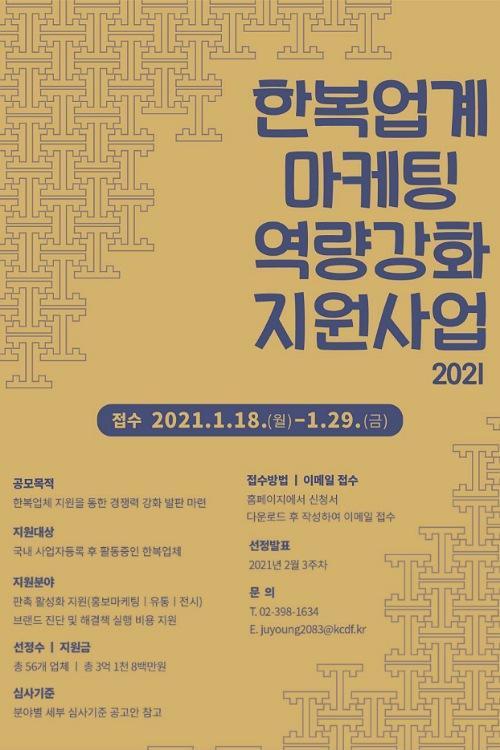 2021³â¿¡´Â ÇѺ¹¾÷°è ±¹³»¿Ü ÆÇ·Î°³Ã´°ú ÇѺ¹ ¼ö¿ä È®´ë¸¦ ÇÙ½É »ç¾÷À¸·Î ÃßÁøÇÑ´Ù. ¿Â¶óÀÎ ÇѺ¹»óÁ¡À» »ó¼³ ¿î¿µÇϰí ÇÑ·ù ¿¬¿¹Àΰú Çù¾÷ÇØ ÇѺ¹ÀÇ ÇØ¿Ü ÁøÃâÀ» Áö¿øÇÑ´Ù. ÇѺ¹±³º¹À» Âø¿ëÇÒ 25°³ Áß‧°í±³¸¦ »õ·Ó°Ô ¸ðÁýÇϰí, ±¹¸³ ¹®È¿¹¼ú±â°üºÎÅÍ ÇѺ¹ ±Ù¹«º¹À» µµÀÔÇÑ´Ù. Áö¿ªÀÇ ÇѺ¹ Âø¿ë ¿ì´ë Á¤Ã¥µµ È®´ëÇÑ´Ù.