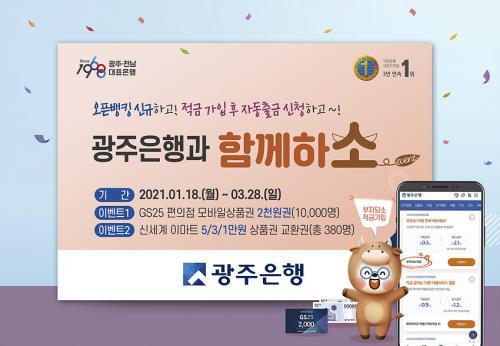 ¡ã¡®¿ÀÇÂÇϼҡ¯ À̺¥Æ®´Â ±¤ÁÖÀºÇà ¿ÀǹðÅ· ¼ºñ½º ½Å±Ô °¡ÀÔ ÈÄ ´Ù¸¥ ±ÝÀ¶±â°ü °èÁ¿¡¼ ±¤ÁÖÀºÇà º»ÀÎ °èÁ·Π1¸¸¿ø ÀÌ»ó ÀÌüÇÑ °í°´À» ´ë»óÀ¸·Î Çϸç, ¼±Âø¼ø 10,000¸í¿¡°Ô GS25ÆíÀÇÁ¡ ¸ð¹ÙÀÏ»óǰ±Ç 2õ¿ø±ÇÀ» Á¦°øÇÑ´Ù.
