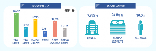 ¡®±¤°í»ê¾÷Á¶»ç¡¯´Â ±¹°¡½ÂÀÎÅë°è·Î¼­, 6°³ ±¤°í»ê¾÷ ¾÷Á¾(±¤°í´ëÇà¾÷, ±¤°íÁ¦ÀÛ¾÷, ±¤°íÀü¹®¼­ºñ½º¾÷, Àμâ¾÷, ¿Â¶óÀα¤°í´ëÇà¾÷, ¿Á¿Ü±¤°í´ëÇà¾÷)¿¡ ´ëÇÑ Åë°èÁ¤º¸¸¦ ¸Å³â ü°èÀûÀ¸·Î Á¦°øÇÑ´Ù.