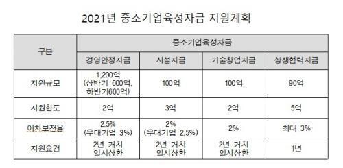 Áß¼Ò±â¾÷À°¼ºÀÚ±ÝÀº °ü³» Áß¼ÒÁ¦Á¶¾÷üÀÇ °æ¿µ¾Ö·Î ÇØ¼Ò¸¦ À§ÇØ ±â¾÷ÀÇ ÀºÇà ´ëÃ⠽à ÀÌÀÚ¿¡ ´ëÇÑ ÀϺθ¦ º¸ÀüÇØÁÖ´Â »ç¾÷ÀÌ´Ù. ÀÌÂ÷º¸ÀüÀ²Àº °æ¿µ¾ÈÁ¤ÀÚ±Ý 2.5%, ½Ã¼³ÀÚ±Ý 2%ÀÌ¸ç ¿ì´ë±â¾÷¿¡ ÇØ´çÇÒ °æ¿ì ÇØ´ç Áõ¸í¼¸¦ Á¦ÃâÇÏ¸é ¿ì´ë±Ý¸® 0.5%°¡ Ãß°¡ Áö¿øµÈ´Ù. ¿ì´ë±â¾÷Àº ±èÇØ½Ã ÀÏÀÚ¸®¿ì¼ö±â¾÷, ¿©¼º±â¾÷, Àå¾ÖÀαâ¾÷, â¾÷2³â¹Ì¸¸±â¾÷, ±èÇØÇü°¼Ò±â¾÷ÀÌ ÀÖ´Ù.