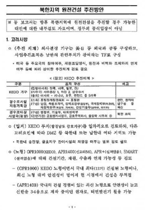 º¸°í¼ ù¸Ó¸®¿¡´Â ¡°µ¿ º¸°í¼´Â ÇâÈÄ ºÏÇÑÁö¿ª¿¡ ¿øÀü°Ç¼³À» ÃßÁøÇÒ °æ¿ì °¡´ÉÇÑ ´ë¾È¿¡ ´ëÇÑ ³»ºÎ°ËÅä ÀÚ·áÀ̸ç, Á¤ºÎÀÇ °ø½Ä ÀÔÀåÀÌ ¾Æ´Ô¡±À̶ó°í ¸í½ÃµÅ ÀÖ´Ù.